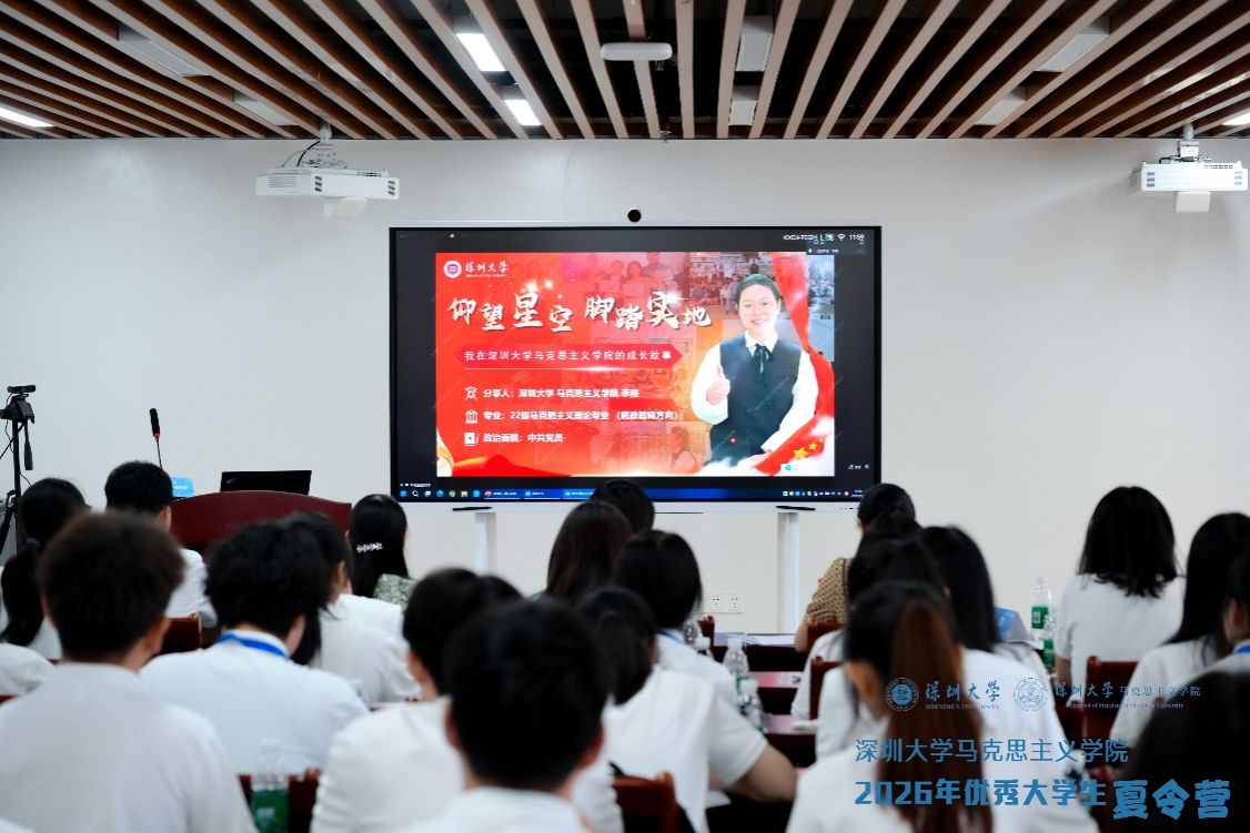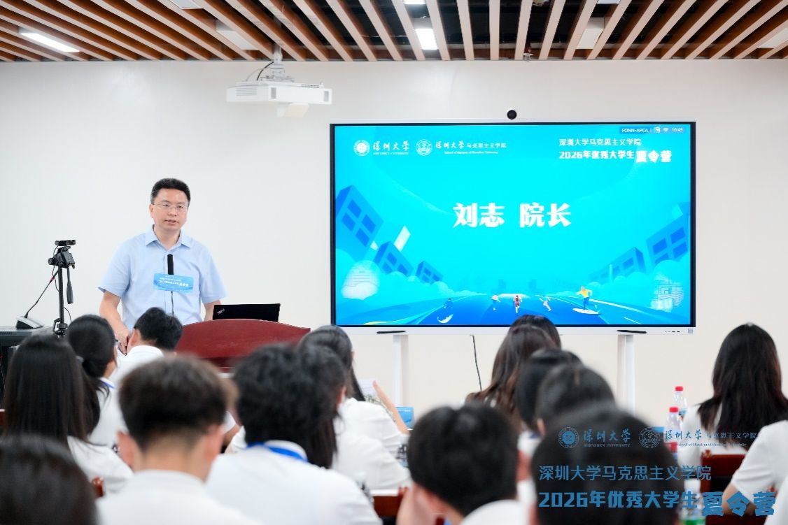 自创立以来,始终与深圳特区血脉相连,同频共振,综合实力显著提升,衷心希望同学们深度体验深大的活力与魅力,特别是走进马院,感受这所在改革开放前沿阵地成长起来的马院的独特风采。